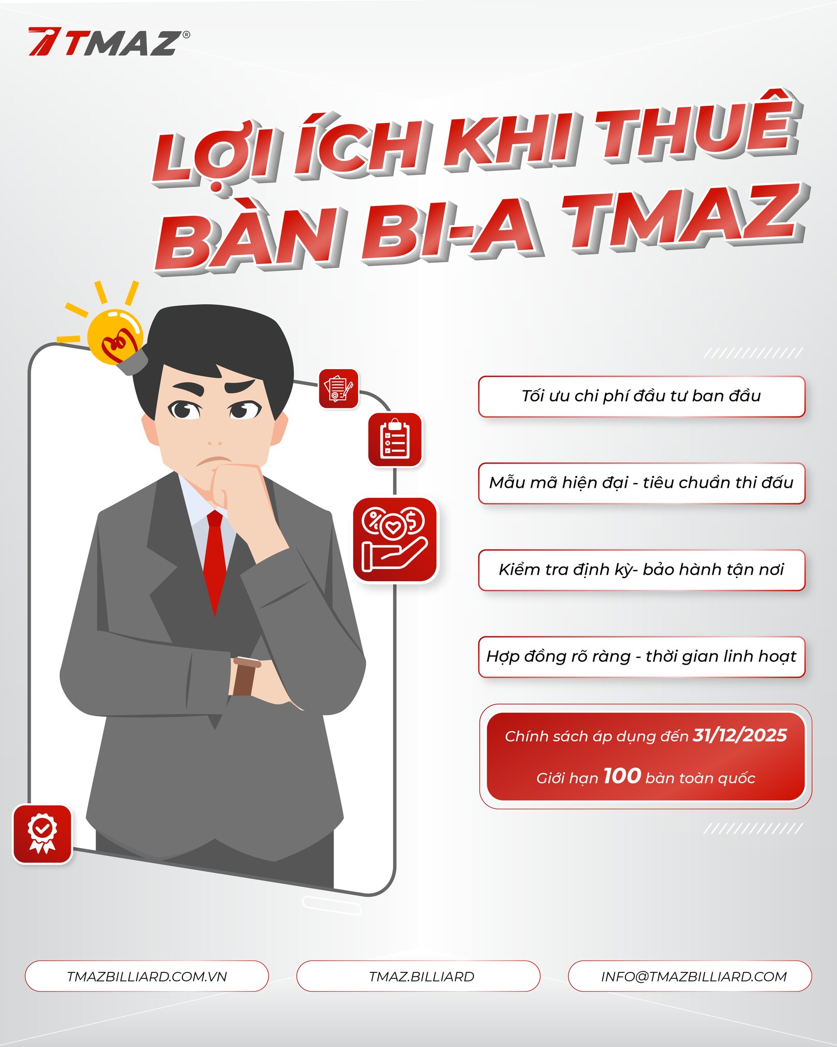 TMAZ Billiard – dịch vụ thuê bàn bi-a chuẩn thi đấu, chất lượng cao, uy tín và toàn quốc.