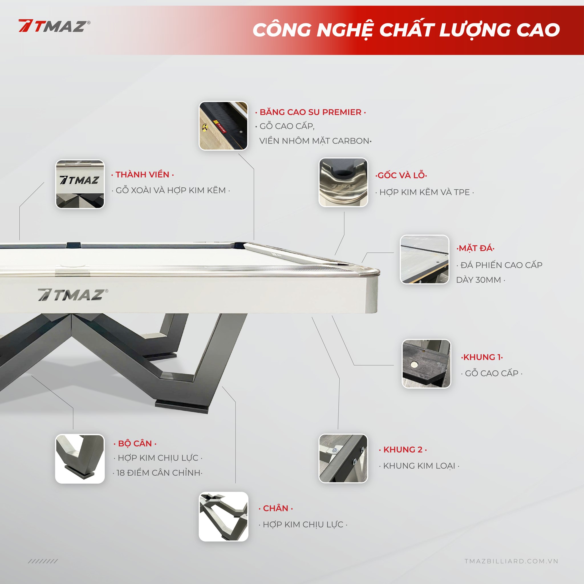 Bàn bi-a TMAZ Billiard không chỉ đạt chuẩn kỹ thuật mà còn thẩm mỹ cao: